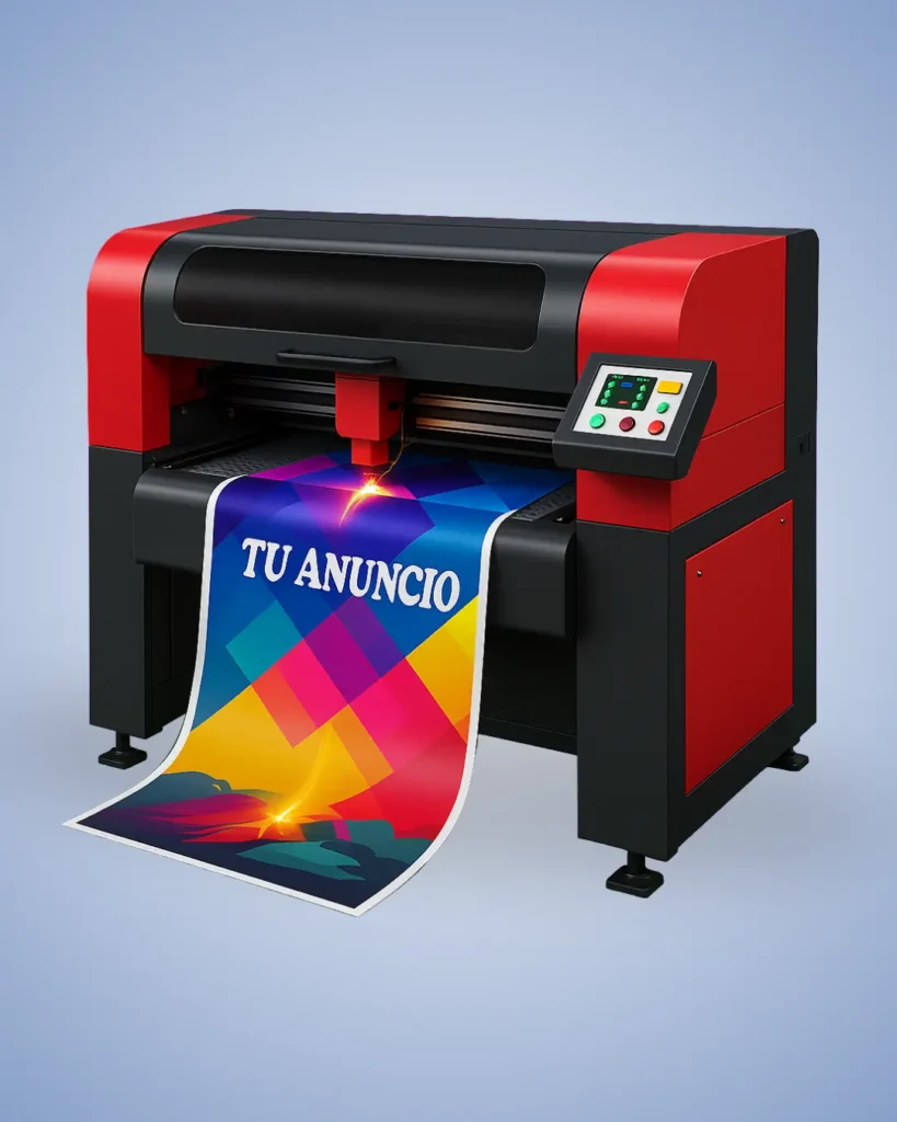 Para impresión a gran escala por metro lineal. El ancho de la máquina es de 1.60 cm y ancho de impresión 1.58 cm.
